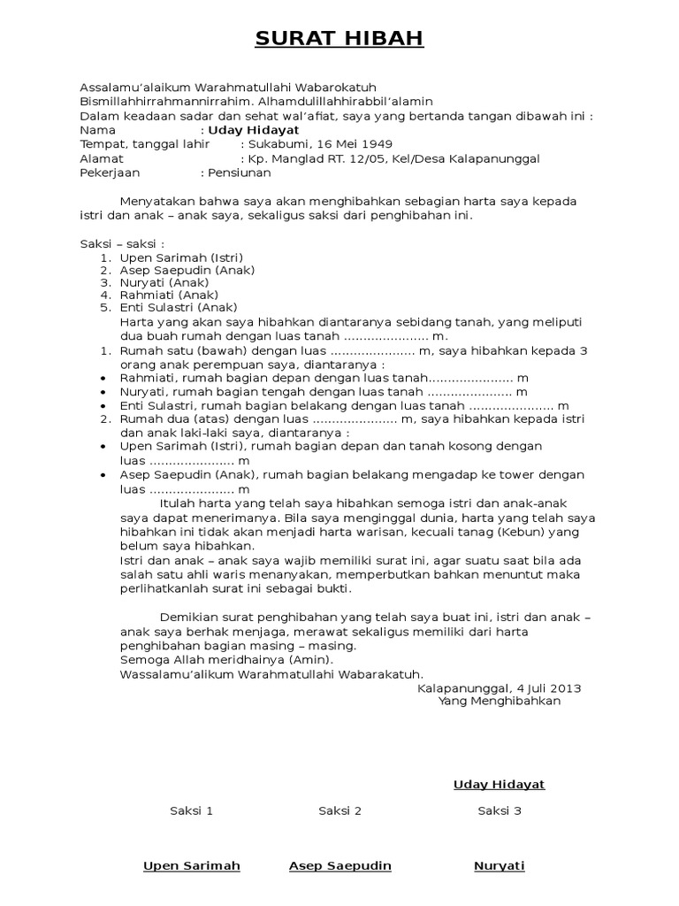 Contoh Surat Hibah Harta